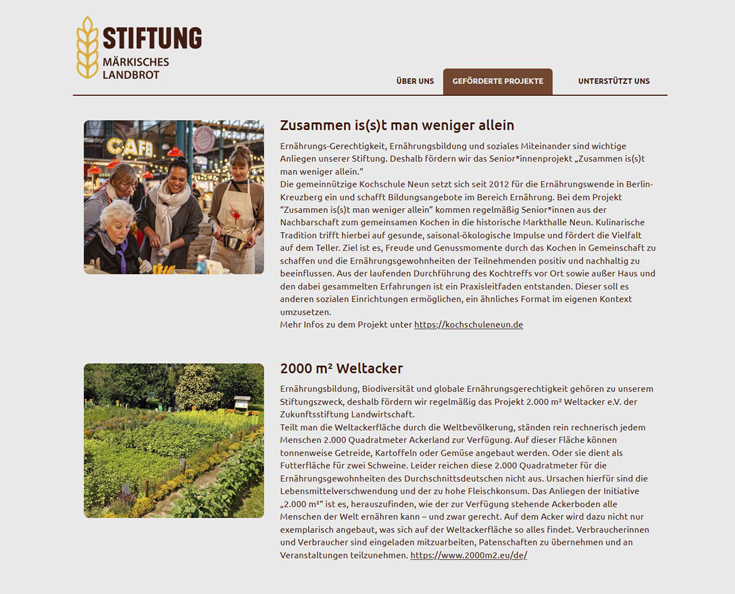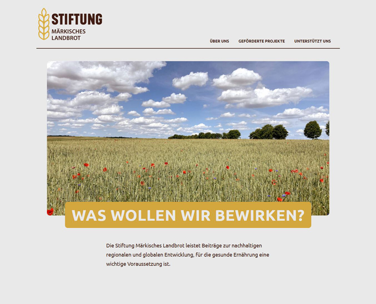 Die Bio-Bäckerei Märkisches Landbrot wurde 2023 in eine Stiftung überführt. Ich gestaltete das Webdesign unter Berücksichtigung der Anforderungen seitens des Stiftungsrats und -vorstands.