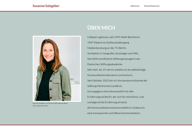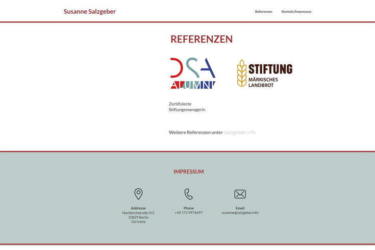 Susanne Salzgeber ist zertifizierte Stiftungsmanagerin und beauftragte mich, eine Einzelseite als Web-Visitenkarte für sie zu gestalten.